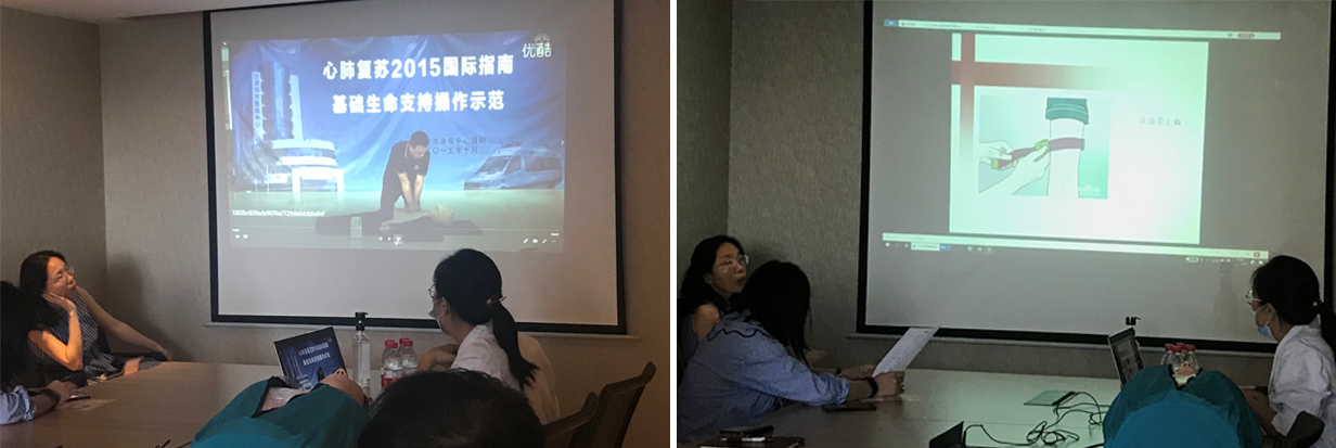 本次培訓邀請了南方醫科大學醫學碩士陳順枝主治醫師進行應急救技能的現場講解及演示,培訓環節主要分外傷救治、中暑處理、心肺復蘇三部分進行講解,運用圖文、視頻并茂詳細介紹不同環境面對突發事件的發生,根據患者的臨床表現癥狀,應該如何采取應急措施等相關知識。